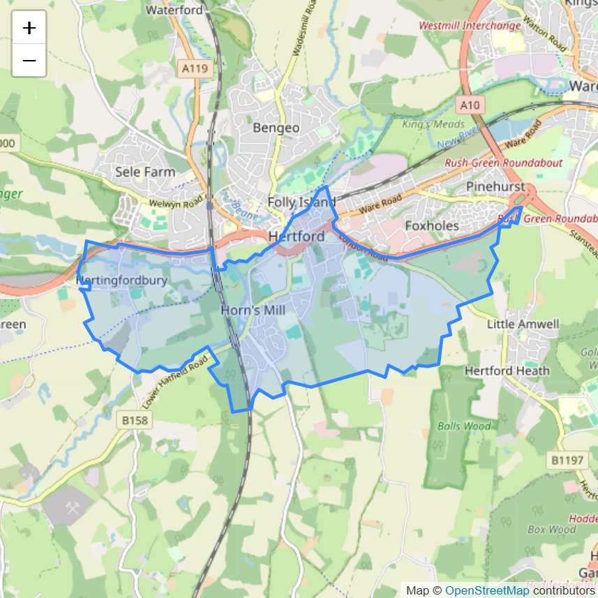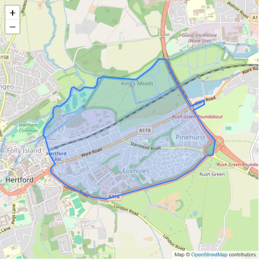 Politically and statistically, Hertford is divided into four areas or 'wards': Kingsmead in the east, Bengeo in the north and east, Sele in the north-west, and Castle ward in south and central Hertford.